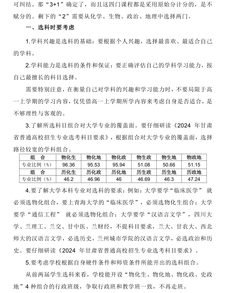 (2024 年甘肃省高校招生选考科目要求-本科)