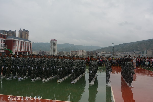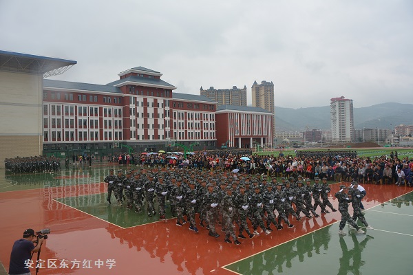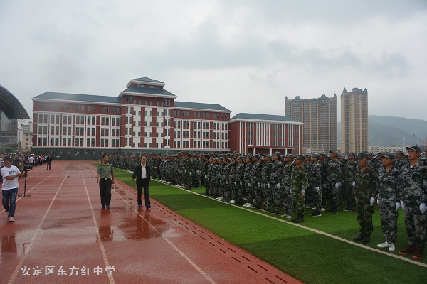 东方红中学隆重举行2018级 高一新生军训汇报表演暨总结表彰大会